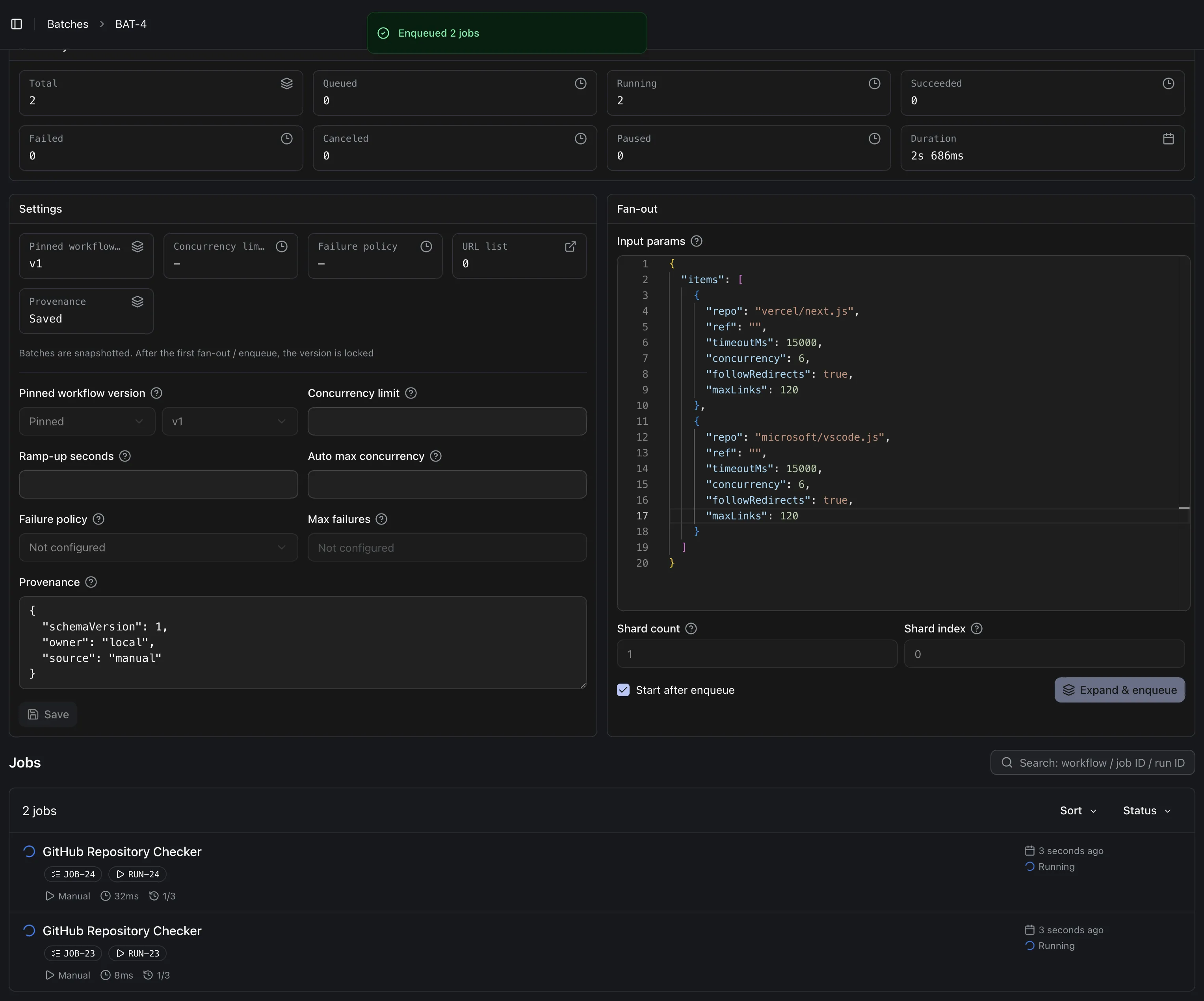 Section titled “Batches”If I want, I can also trigger multiple tasks in batches and process them in parallel.